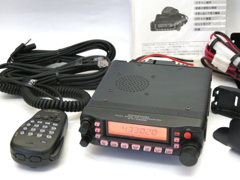 商品名= 144/430Mhz帯 FMTRANSCEIVER、型式= FT-7900、メーカー= STANDARD 電源= DC13.8V、20wタイプ、新スプリアス002KN552 付属品= ハンドマイク、セパレートキット、ブラケット、DC電源コード、取説があります。 動作= 動作確認を行いました、良好です。 外観状態= 小さいスリキズがあります。取説に痛みがあります。