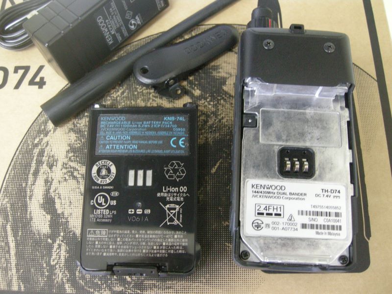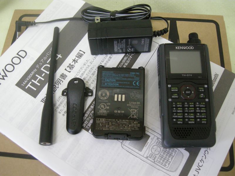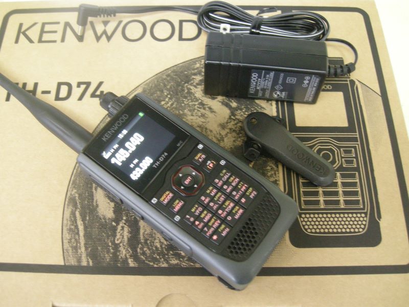商品名= 144/430 デジタル/FM TRANSCEIVER、型式= TH-D74、メーカー= KENWOOD 詳しくは、TH-D74 アマチュア 無線 KENWOOD 付属品= バッテリー、充電器、アンテナ、ベルトクリップ、取説、元箱があります。 動作= 点検済み、FM送受信良好です。 デジタル系や極詳細な点検は行なっておりませんので現状渡しになります。 外観状態= 極小さいスリキズがありますが大変綺麗です。