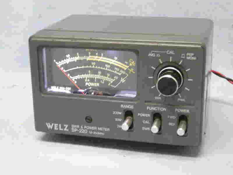 商品名= SWR & POWER METER、 型式= SP-220、メーカー= WELZ BAND= 3.5~144Mhz帯、 測定レンジ= 5/20/200w 付属品= 接続用同軸ケーブル50cmがあります。 動作状態= テスト済み、良好でした。 外観状態= スリキズがあります。